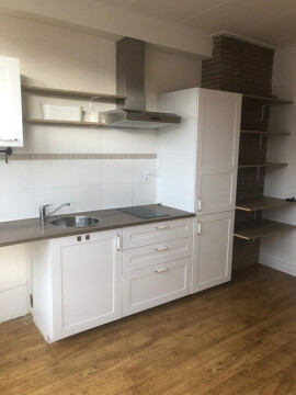 Entree op eerste etage, woonkamer, slaapkamer, keuken met kookplaat, koelvries combinatie en afzuigkap. Gehele appartement voorzien van laminaat, badkamer met douche en wasbak, apart toilet